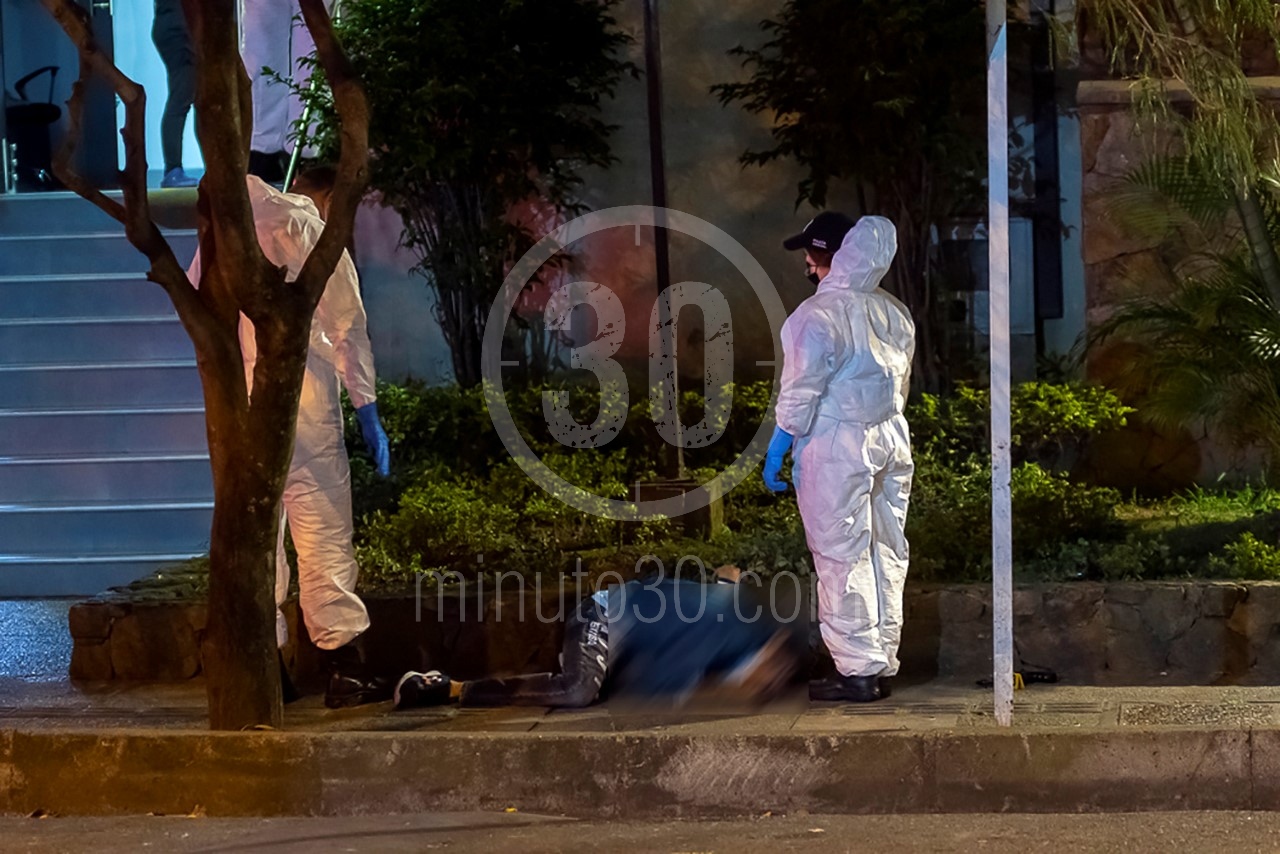 Posteriormente se ve como sale el vigilante, al parecer de un local continúo en Laureles, y le disparó en repetidas oportunidades, causándole la muerte en el lugar de los hechos.