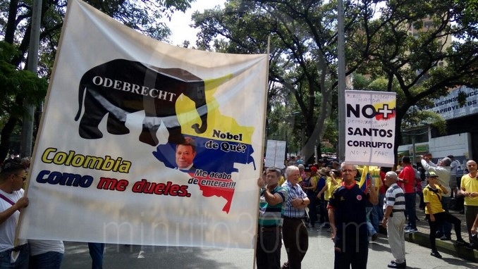 Minuto30.com-. Masiva fue la asistencia a la marcha anticorrupción y en contra del Gobierno de Juan Manuel Santos, convocada por el Centro Demócratico. A las 10:00 de la mañana inició la movilización simultánea en 18 ciudades del país.