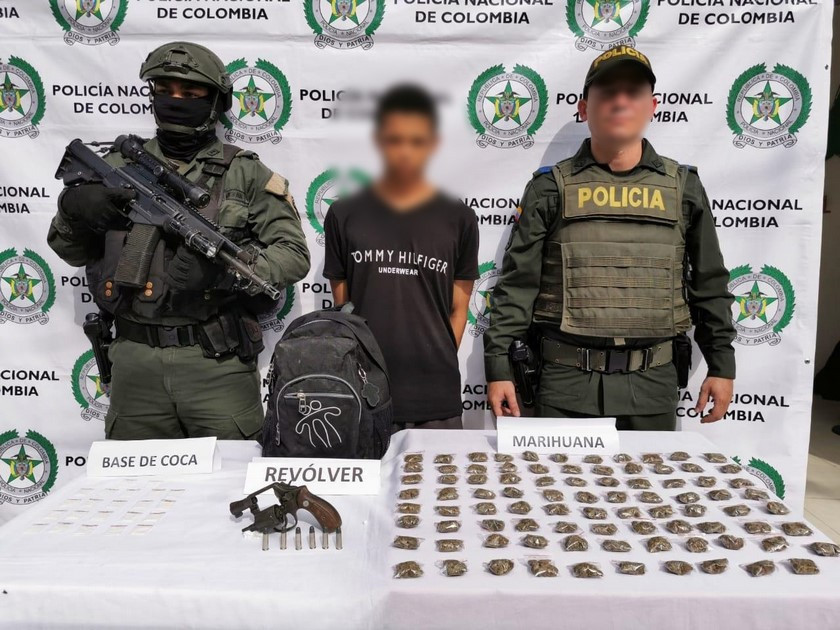 Asimismo en el operativo fue capturado en flagrancia alias ‘Molina’, de 18 años de edad, quien sería un peligroso sicario a quien se le halló un revólver calibre 38, 87 dosis de marihuana y 22 dosis de base de coca, de acuerdo a las investigaciones este estaría relacionado a más de 9 homicidios ocurridos en el municipio.