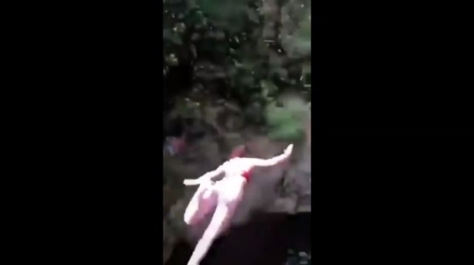 En el video se escucha el impacto con el río, que es más un golpe que una entrada al agua, después de la caída de 20 metros.