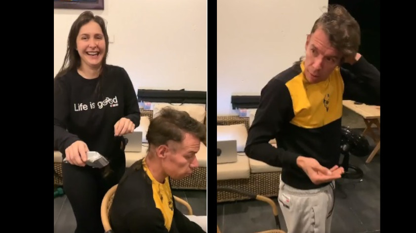 VIDEO: Rigoberto Urán mostró sus dotes de peluquero y retó a los hombres a motilar a sus ‘mujeres’