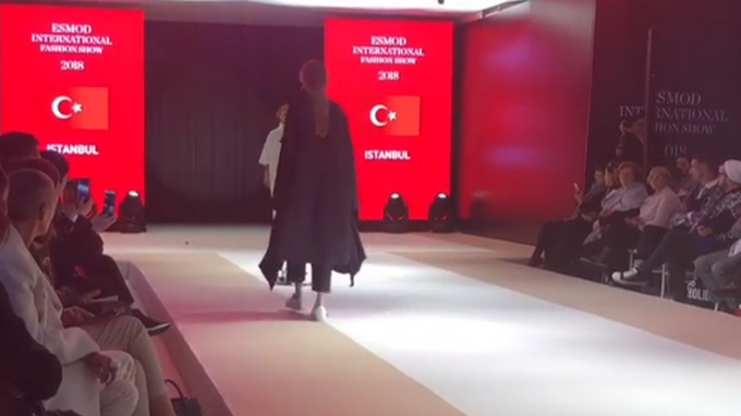 El felino llamó toda la atención de los asistentes a la muestra de moda, quienes solo se limitaron a observar cómo se hacía la limpieza del día sobre el escenario por el que caminaban las modelos como sin nada.