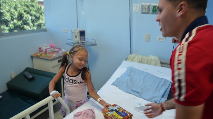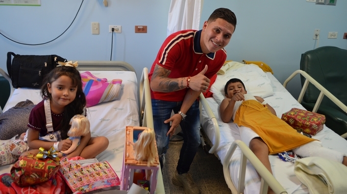 El jugador recorrió algunos servicios del Hospital Infantil, haciendo entrega de los regalos, los cuales causaron en los niños gratitud, felicidad y emoción.