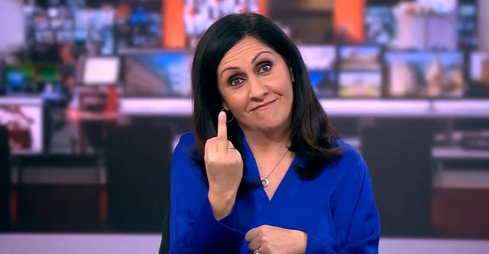 Durante dos segundos, la presentadora hizo ‘pistola’, una de las ofensas más antiguas, en la que se levanta del dedo del medio.