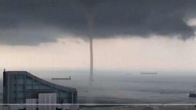 #VideoViral 🌪 Impactante tromba marina sorprende a habitantes de Singapur pic.twitter.com/u5Oex6kEAP