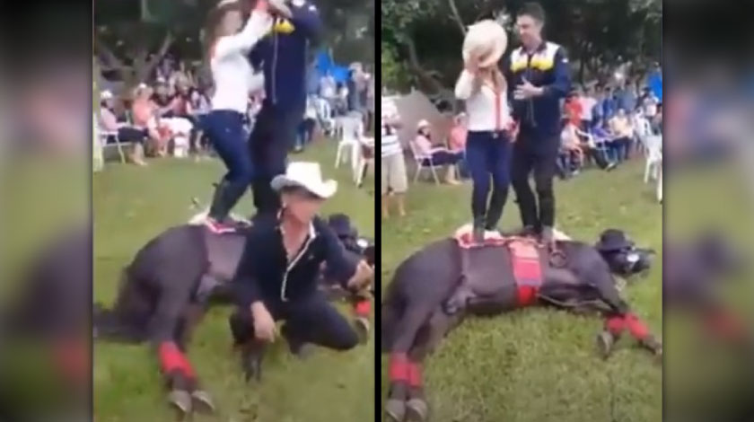 Cientos de personas en el mundo han quedado indignadas por el video que circula en redes sociales, donde se ve a un hombre y una mujer bailar sobre las costillas de un caballo en medio de una fiesta.