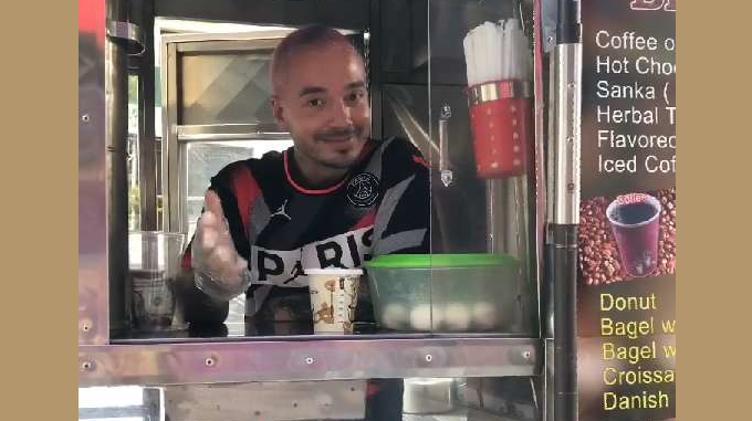 Balvin no solo vendió cafés y pan, también se tomó el que acostumbra tomar en las mañanas y le deseó “muy buenos días” a sus seguidores en Instagram.