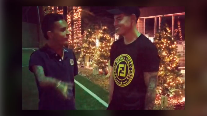 El divertido momento en que reta a James a hacer unos ejercicios de resistencia fue grabado y publicado en redes sociales con el siguiente texto: “Gracias @jamesrodriguez10 por abrirme las puertas de tu casa, y no me podía ir sin retarte!”.