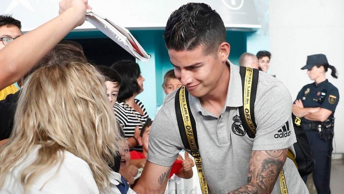 Tras conocerse que el entrenador francés Zinedine Zidane si incluyó a James Rodríguez en su lista de convocados para el primer partido de la temporada contra el Celta de Vigo, el club compartió dos videos donde se ve al colombiano realizando el viaje con el equipo.