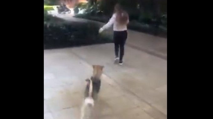 De inmediato la joven increpó a la mujer que estaba grabando diciéndole que si tiene tantas ganas de recoger las heces, que lo hiciera ella.