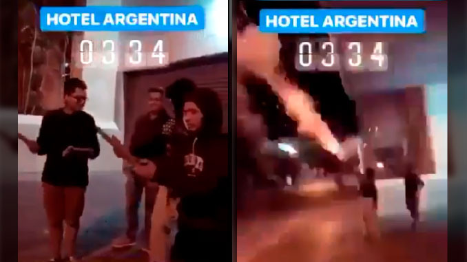 En un video compartido a través de redes sociales se observó a un grupo de sujetos que después de las 3:00 a.m. lanzaron lo que al parecer eran bengalas al lado del hotel y algunos integrantes de la delegación argentina plantearon que las autoridades locales no hicieron nada para impedirlo.