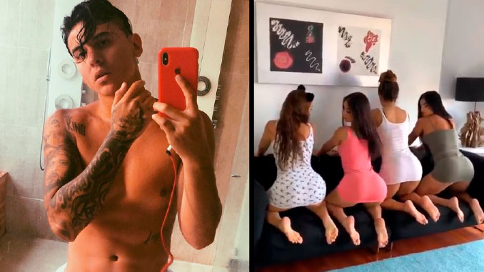 Son cuatro las chicas que aparecen en el video que Kevin compartió en sus redes sociales. Ellas, con muy poca ropa, muestran sus atributos físicos y luego se arrodillan en el mueble que estaban sentadas para hacer twerking mientras se ayudan la una a la otra a bajarse los vestidos diminutos que se les sube con el sensual movimiento de cadera.