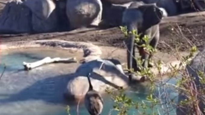 Esta es una de las batallas más reproducidas por los cibernautas, ni el elefante ni mucho menos el ganso estaban dispuestos a ceder su espacio en el estanque.
