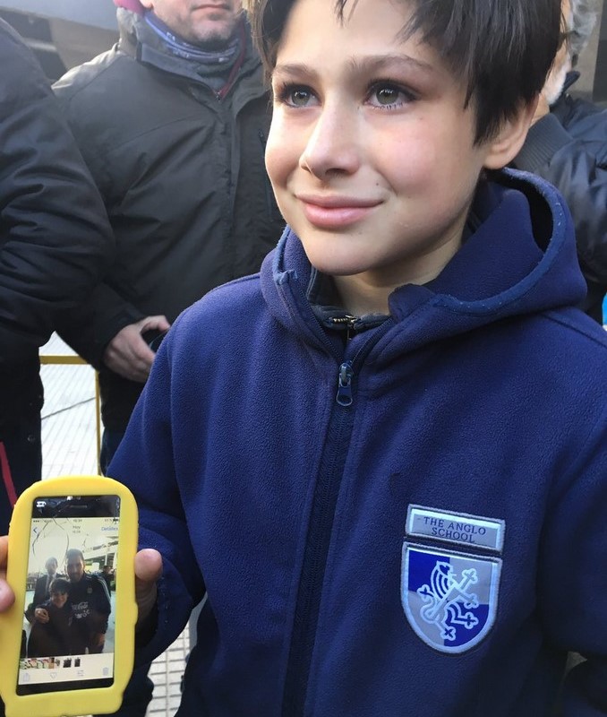 El pequeño, bastante emocionado, pudo cumplir su sueño. Se llevó la imagen en su celular.