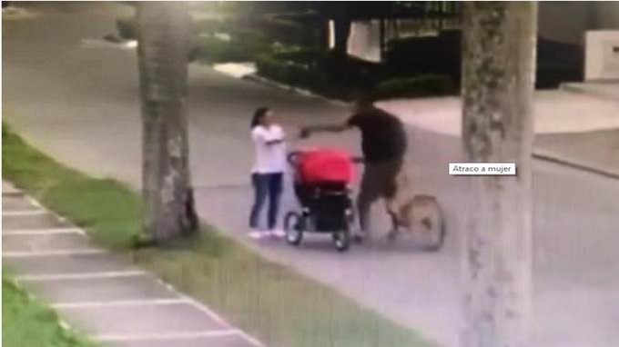 En un video de cámaras de seguridad quedó registrado el momento en el que una mujer que paseaba a su bebé de 3 meses de nacido, fue abordada por un presunto delincuente quien con arma blanca la intimidó y le robó el celular.