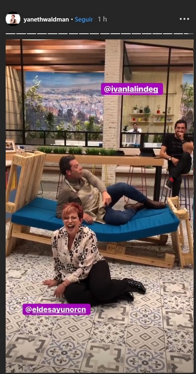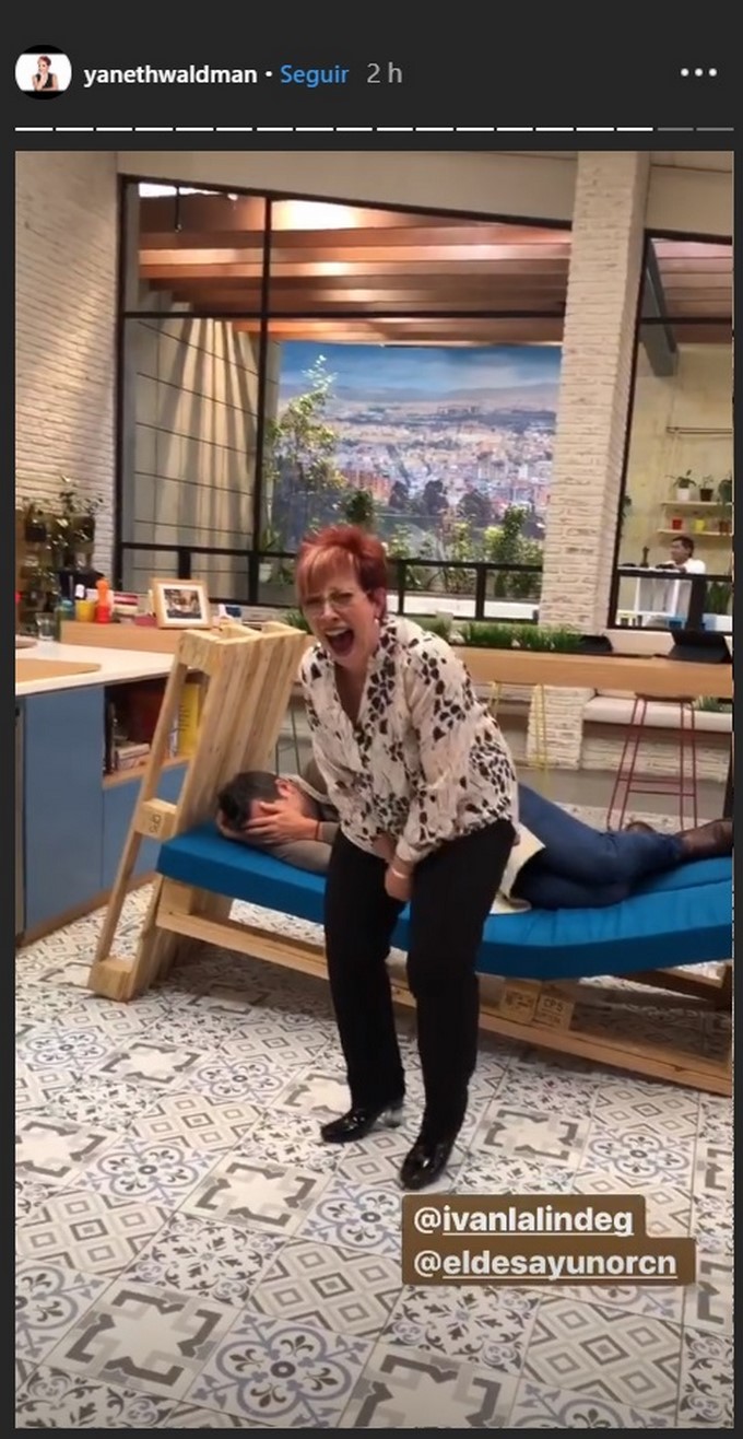 Yaneth Waldman la presentadora del programa ‘El Desayuno’ del canal RCN tuvo tremenda caída durante el programa, Iván Lalinde estaba acostado en lo que parece ser un mueble donde se sientan los invitados, pero ella quiso hacer una broma y terminó fue destruyendo el mueble.