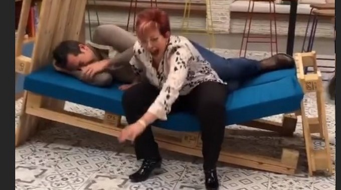 El video deja ver inicialmente a Iván acostado en el mueble, cuando ella lo ve relajado se le acerca y enseguida él le dice: “venga hagamos ‘cucharita’”, pero cuando Waldman se sienta en las astillas de madera se destruyen, el mueble se parte a la mitad dejando por fuera a la presentadora y enseguida todo se echaron a reír.