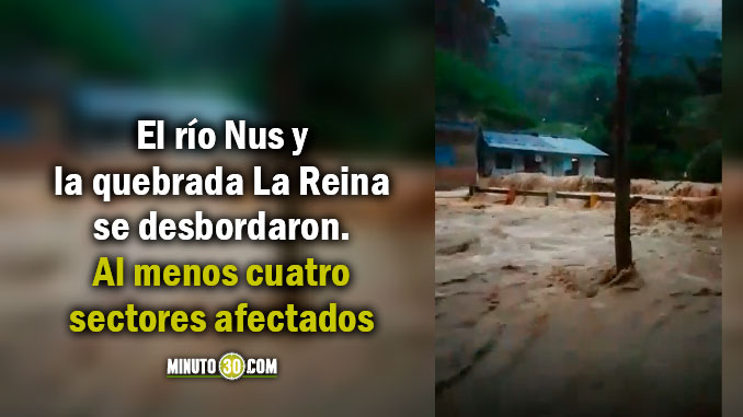 Según la comunidad, la quebrada La Reina y el río Nus se desbordaron, dejando al menos cuatro sectores afectados. La emergencia se presentó en horas de la madrugada de este lunes.