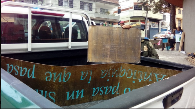 Minuto 30 tuvo acceso a un video en el que se puede ver el momento en el que las placas que se habían robado en Santa Elena fueron recuperadas. Lo indignante de la situación es que fueron rescatadas en una chatarrería, y al parecer, los delincuentes realizaron este robo para luego vender este tesoro de los silleteros como un simple metal.