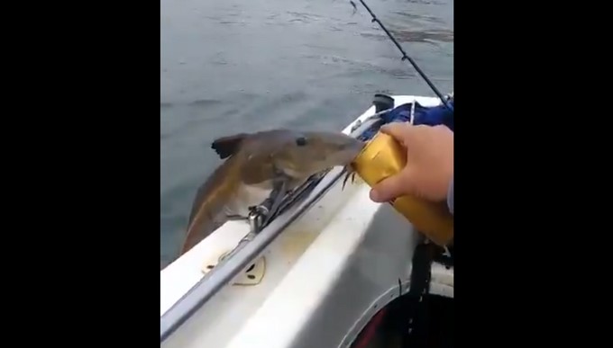 VIDEO: Le dan cerveza a un pez, se graban y la red los ‘apedrea’