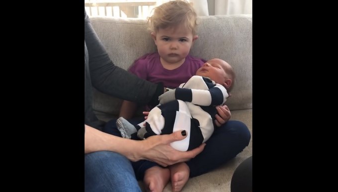 A una niña pequeña le presentaron a su hermano recién nacido, sin embargo al parecer, este hecho no le hizo mucha gracia.