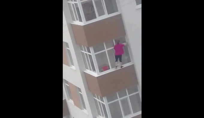 “Todo sea por la limpieza” parece ser el lema de esta ama de casa captada limpiando unos ventanales a varios pisos de altura. Las imágenes captadas en Moldavia, muestran a la mujer sin ningún tipo de protección o prenda de sostenimiento. Al final del clip la señora vuelve a ingresar al apartamento con absoluta facilidad.