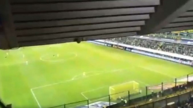 En las imágenes se puede ver claramente cómo se mueven las paredes de una de las tribunas laterales del escenario, cuando la hinchada está en pleno furor, saltando y cantando.