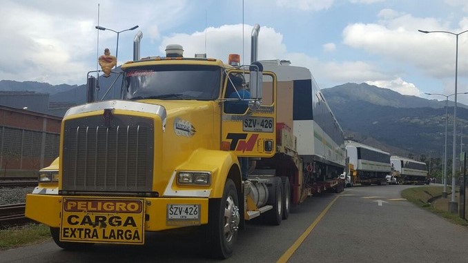 En tractocamiones, llegaron los vagones de la moderna unidad que reforzará el servicio en el área metropolitana.