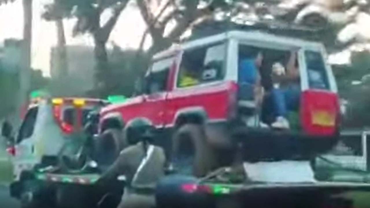 En un video difundido en redes sociales, se observa un insólito hecho que ocurrió en Cali, Valle del Cauca, cuando un ciudadano grabó a un vehículo campero, siendo llevado por una grúa, que no solo cargaba el carro sino a sus pasajeros en él.