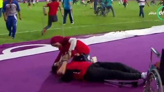Varios hinchas saltaron de sus sillas de ruedas, tras la clasificación de Egipto al Mundial de Rusia 2018.