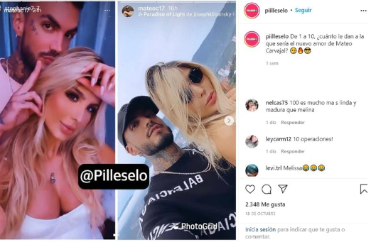 Luego Mateo publicó algunas imágenes con quien sería su nueva novia, tras revelarse las instantáneas, algunos usuarios calificaron a la joven como “muy linda”, mientras que otros la señalaron de ser “muy plástica” y de ser una “Melina de bajo presupuesto”.