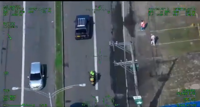 En las imágenes, publicadas por la Policía, se puede ver como primero el helicóptero identifica plenamente el vehículo, y posteriormente, con la información que logra suministrar, unidades terrestres lo alcanzan y lo obligan a detenerse, encontrándolo con un arma traumática, por lo que se le impuso un comparendo, cobijado en el Código Nacional de Policía.