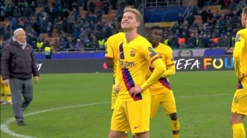Tras el término del encuentro por la Liga de Campeones entre el Inter de Milán y el Barcelona, todos en el equipo español celebraron la victoria por 1-2 y su paso a la siguiente fase del torneo, excepto el holandés De Jong, quien se puso a mirar los resultados en la pantalla del San Siro para darse cuenta de la eliminación del Ajax, su antiguo equipo.