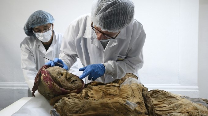 El científico francés Philippe Charlierrealiza estudios de la “momia de Guano”