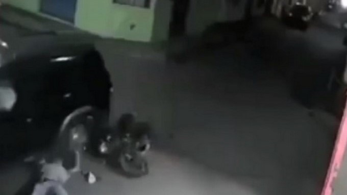 En el video se puede observar como el motociclista cae de su moto y de inmediato su cabeza es aplastada por una de las llantas traseras del carro, pero algo sorprendente sucedió, minutos después el sujeto se trata de poner de pie lentamente.