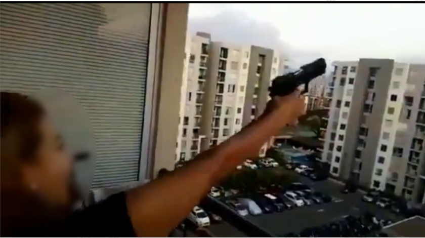 En redes sociales comenzó a circular un video en el que, una mujer, acompañada de un hombre y otras dos mujeres, comienza a disparar de manera indiscriminada un arma de fuego en un balcón de la ciudad de Cali.