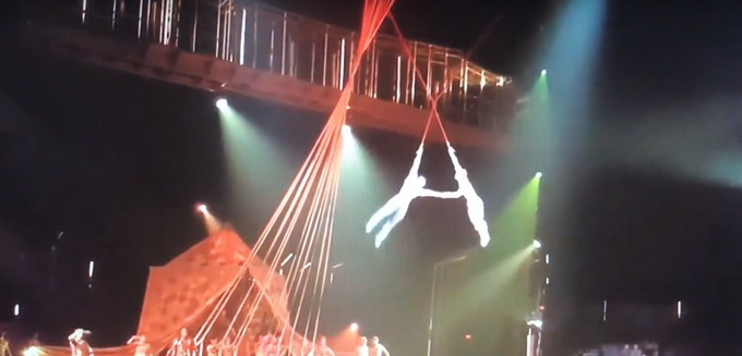 Arnaud que se desempeñaba como acróbata en la compañía desde hace 15 años, en la noche de ayer perdió el agarre de una de las correas, cayendo de repente.