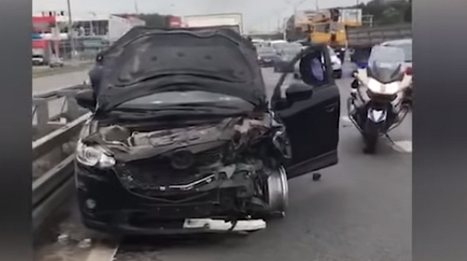 En plena autopista de Moscú, Rusia, una mujer en estado de embriaguez omitió las señales de las autoridades para que detuviera el vehículo y en cambio protagonizó una persecución a alta velocidad que dejó su auto sin neumáticos y completamente destruido en la parte delantera.