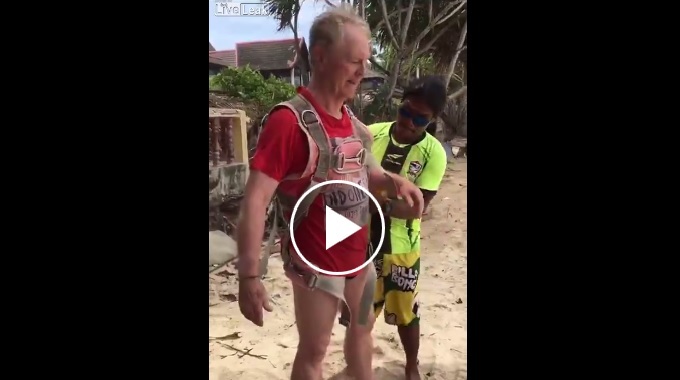 Las imágenes fueron captadas en una playa de Tailandia, cuando el turista de 71 años Roger Hussey se disponía a hacer una sesión de parasailing, deporte acuático en el que se sobrevuela sobre el mar.