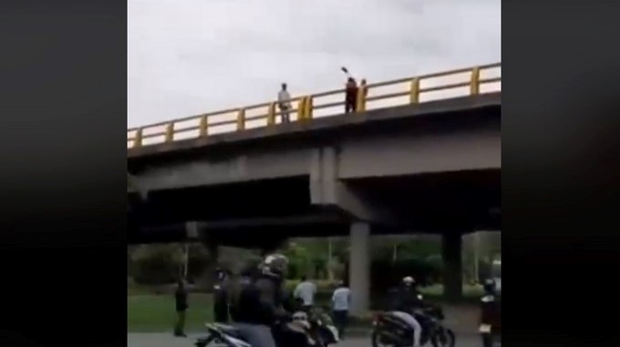VIDEO: Mujer intentó tirarse desde un puente en la avenida 33 pero dos hombres la agarraron a tiempo