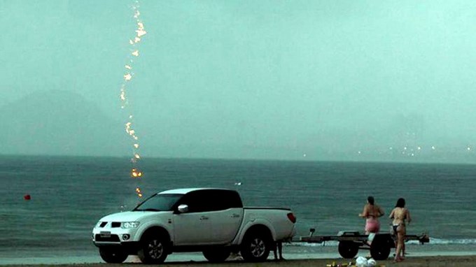 El reportero gráfico Rogério Soares fue el que logró captar la fotografía que dejó al descubierto. Se ve el momento exacto en que el rayo impacta a la mujer de 36 años.