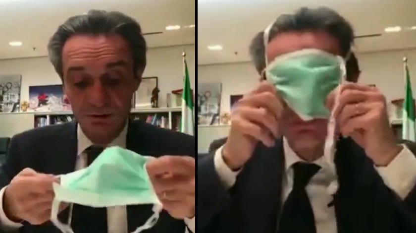 Un particular caso de cómo no usar un tapabocas quedó registrado en video y ocurrió en la región de Lombardía, norte de Italia, donde el presidente de dicha localidad, Attilio Fontana, se grabó intentado ponerse uno y, al parecer, por poco falla en el intento que duró varios minutos.