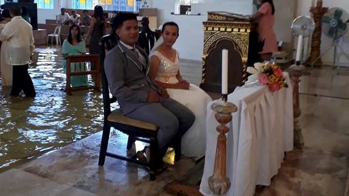 Pese a que hicieron todos los preparativos con antelación no previeron las fuertes lluvias que azotaron en los últimos días la región de Hagonoy en Filipinas, sin embargo esto no fue un impedimento para que Jefferson y Jobel se casaran, realizando la ceremonia con la iglesia inundada.