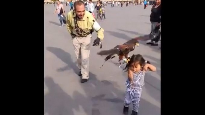 El video que circula en redes sociales deja ver a una niña tratando de escapar de las garras de un águila, al parecer el animal estaba sujetado a un hombre que tenía un guante, pero ni él, ni la madre de la menor la ayudan a salir del ataque en la Plaza de la Constitución de Ciudad de México.