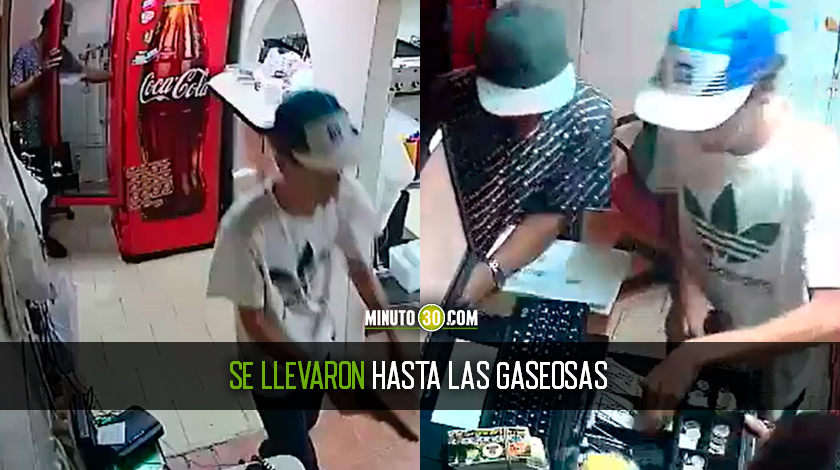 En los videos de las cámaras de seguridad del local comercial afectado por los delincuentes quedó registrado cómo los sujetos entran al lugar, obligan a los presentes a entregar sus pertenencias y a abrir la caja registradora y les da tiempo hasta de sacar gaseosas de una nevera.