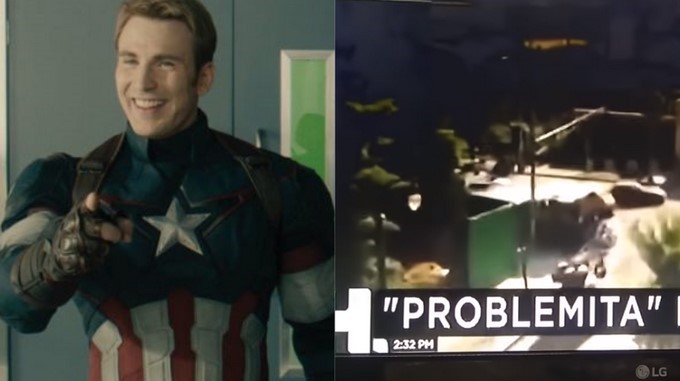 Mientras la pantalla muestra el “incidente” el periodista relata que el extraño suceso que no tiene explicación. Lo raro, es que en las mismas imágenes se ve la camioneta que graba la escena de la película “Capitán América: Civil War”.