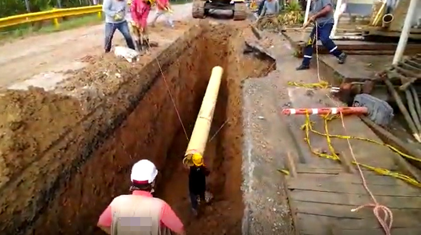 Un hombre que realizaba trabajos de instalación de tuberías bajo una de las principales vías de Ortega, Tolima, murió bajo los escombros y a la vista de todos.