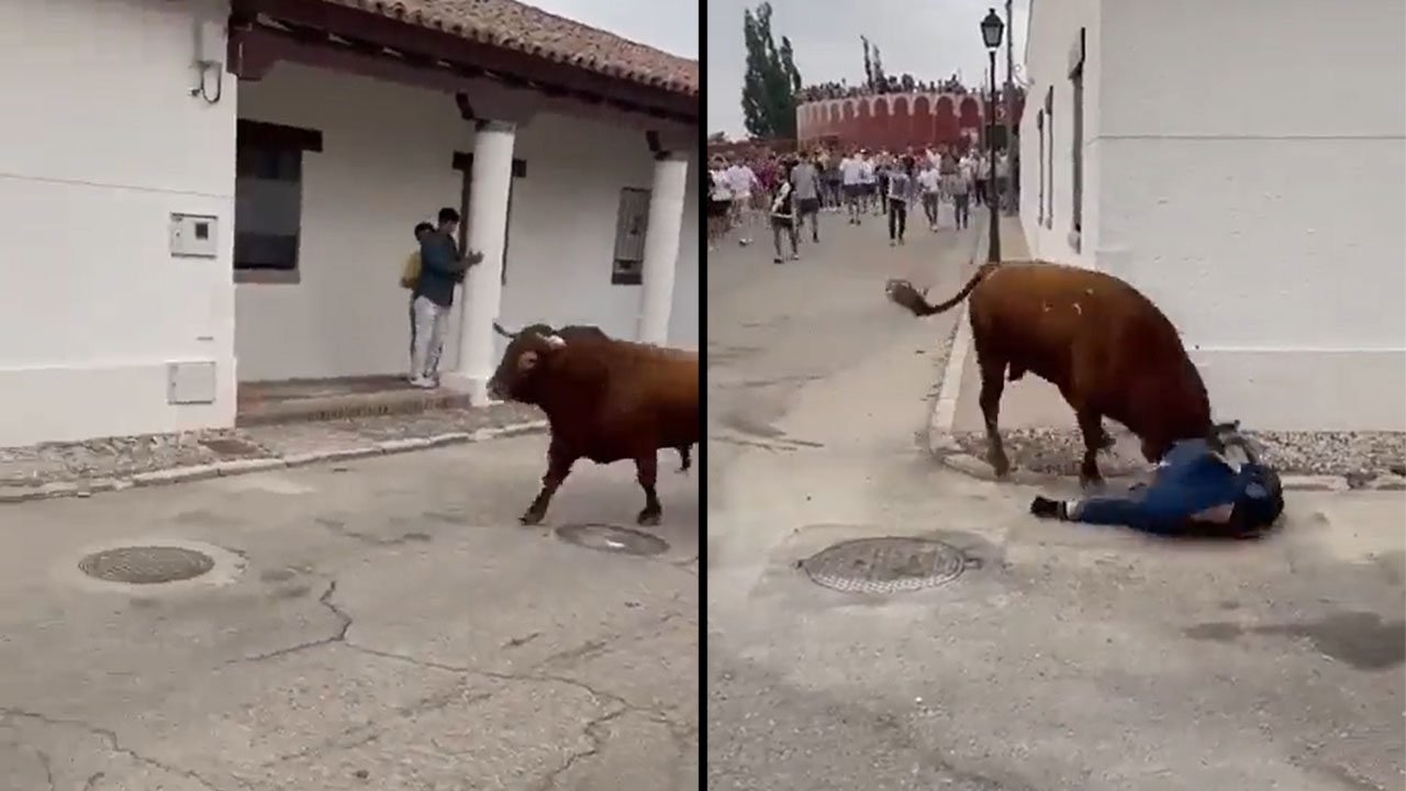 En un video que circula por las redes sociales se ve el momento exacto, en que un todo se lleva por los cachos a una mujer.