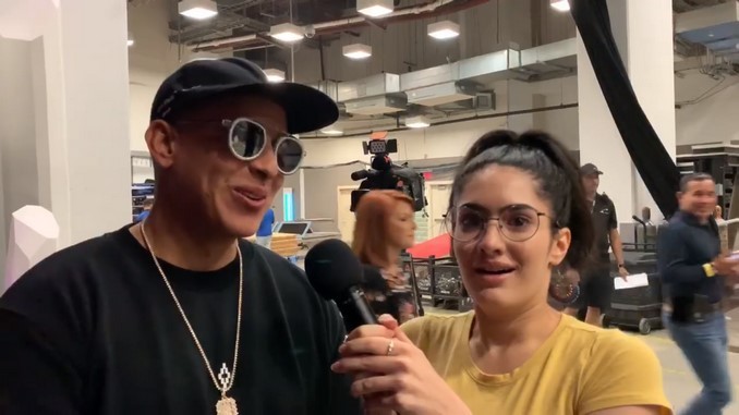 Con una gran cara de asombro la comunicadora comienza la entrevista dando a entender su estado, “estoy tratando de contenerme todo lo posible, los nervios están activados, al lado mío esta, no tan solamente uno de los originales, ¡Omg! está D-D-D-D Daddy Yankee”.