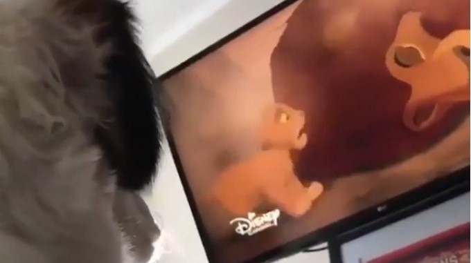 En el clip aparece un perrito viendo “El Rey León”, en la escena en la que Mufasa muere, el perro rompe en llanto.